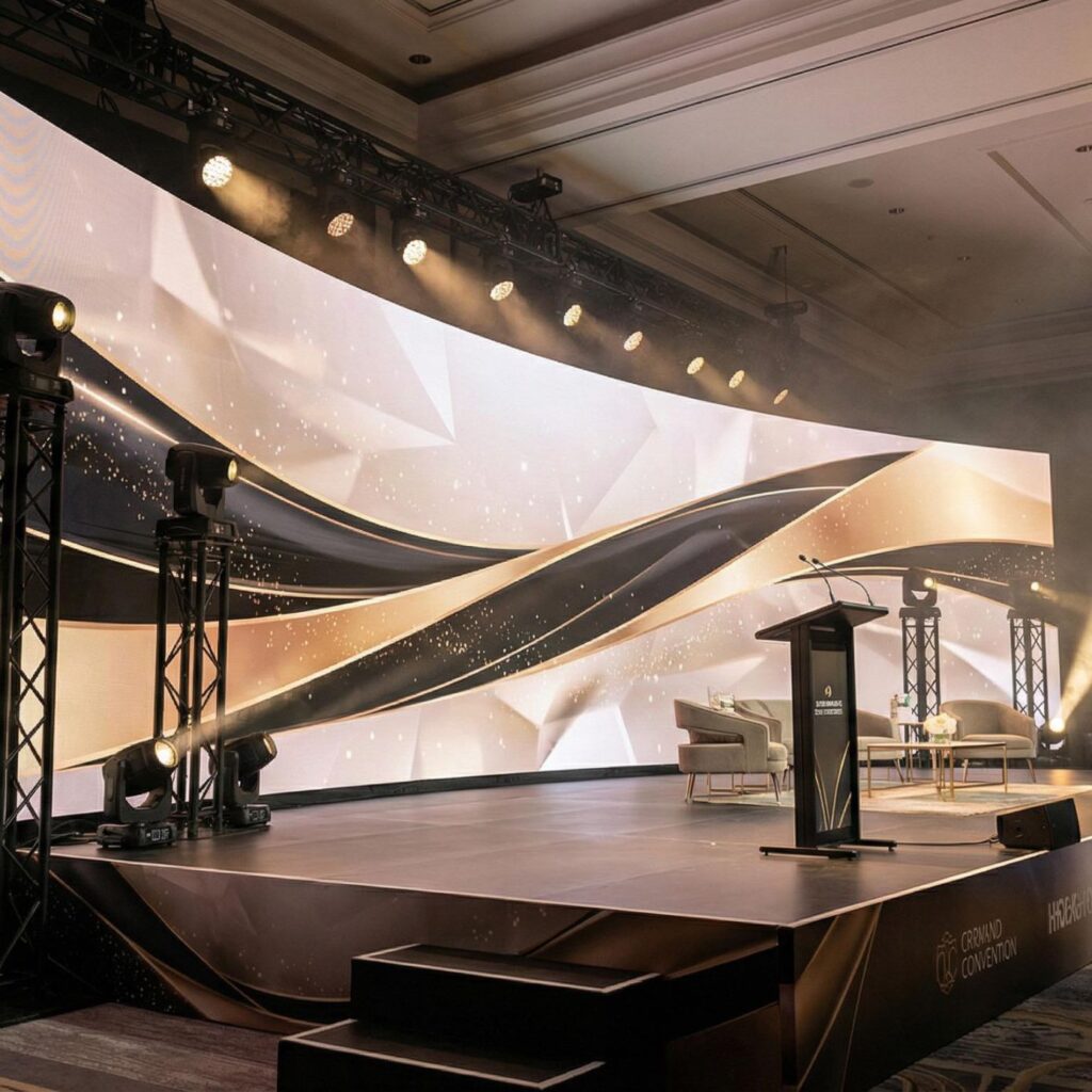 We specialize in LED wall production, custom and large-format backdrop printing, stage management, professional lighting and special effects, sound production, and event photography—ensuring every moment looks as powerful as it feels. Our services also include custom event fabrication, luxury floor wraps and dance floors, and immersive guest experiences such as magazine booths, photo booths, and 360° booths.